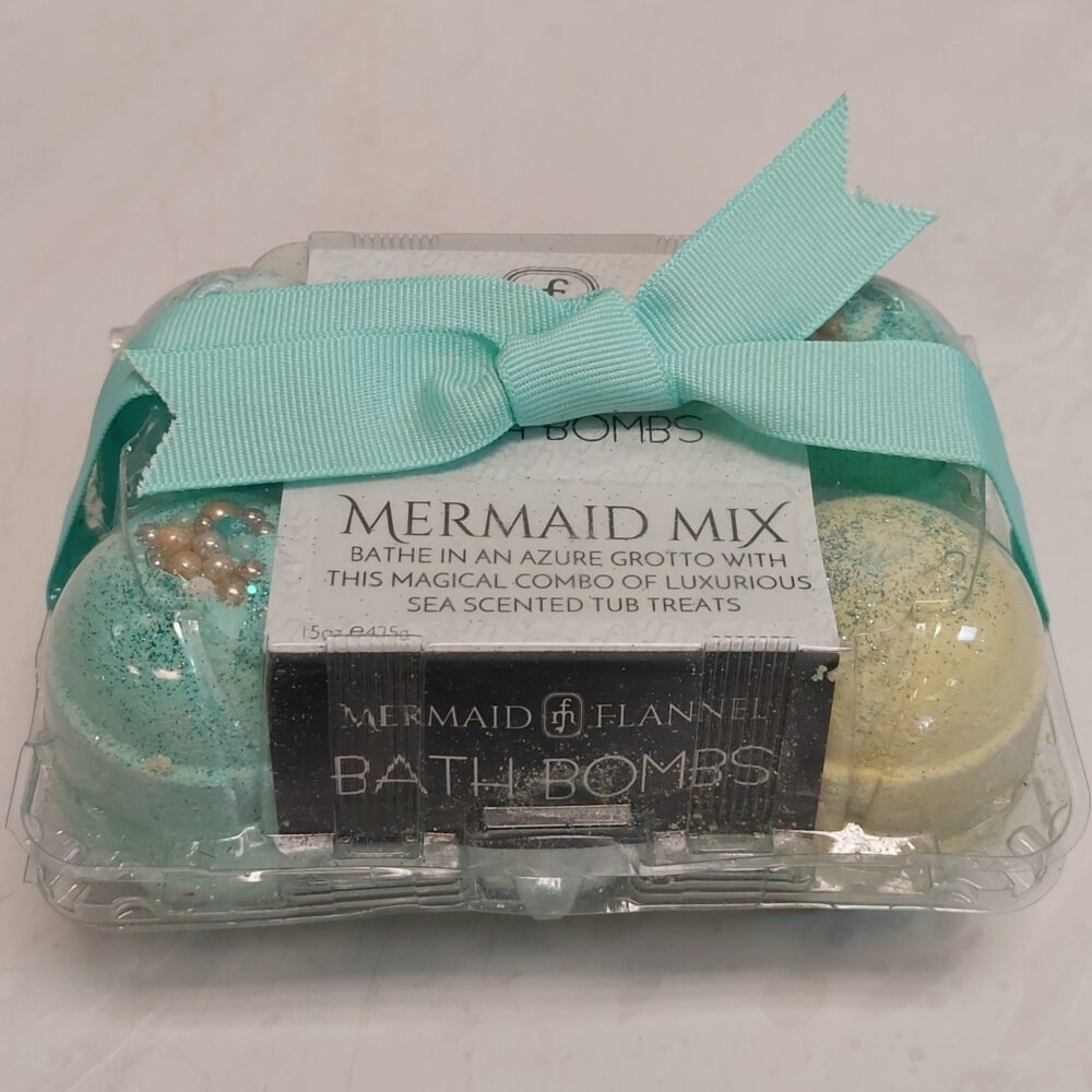 Mermaid Flannel Relaxing Bath Bombs in a gift set of six.