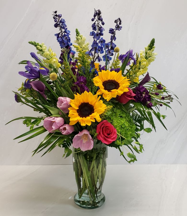 A lush garden mix of seasonal blooms.