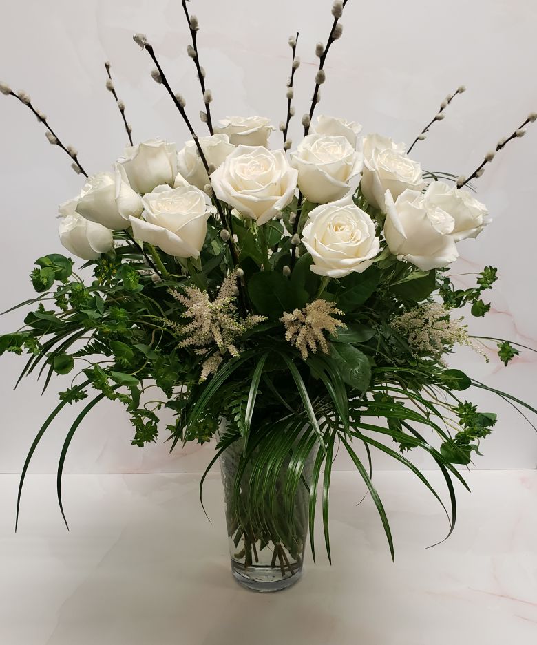 A timeless arrangement of luxurious white roses.